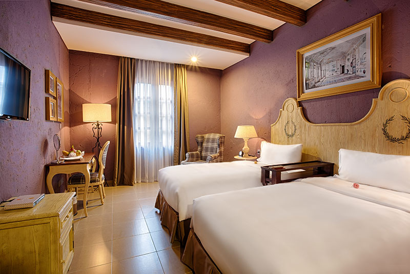 Standard Twin: Rộng 30m2 với giường đôi cho 2 người lớn và 1 trẻ nhỏ, ghế dài và bàn làm việc.