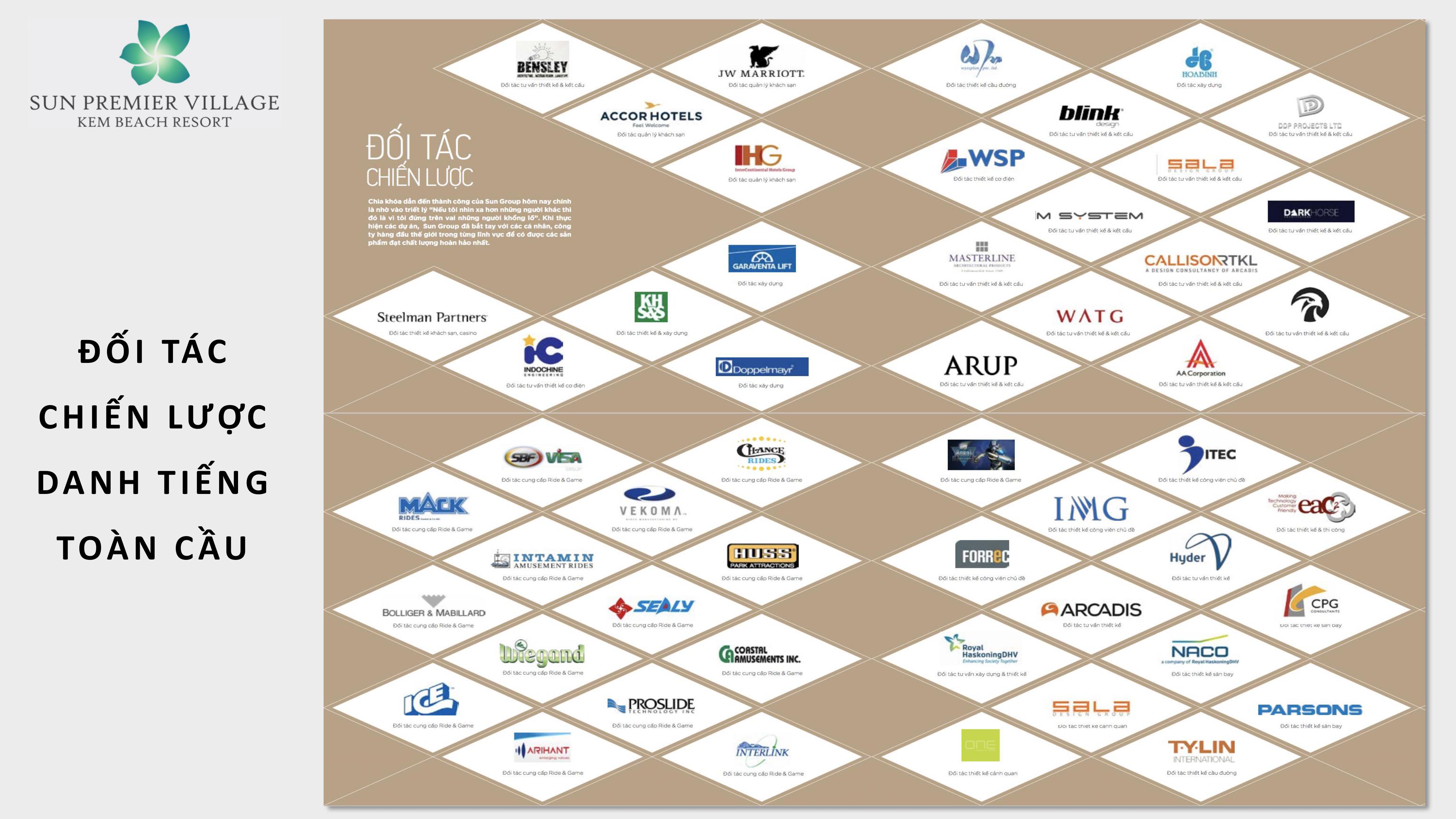 Thứ 4: Với việc chọn các đối tác chiến lược là các Đối tác danh tiếng toàn cầu trong tất cả các lĩnh vực như: Tập đoàn khách sạn IHG, Jw Marriot, Accor Hotel….Đó cũng chính là lời khẳng định và cam kết của Sun Group sẽ mang giá trị đẳng cấp xứng tầm đến với nhà đầu tư.