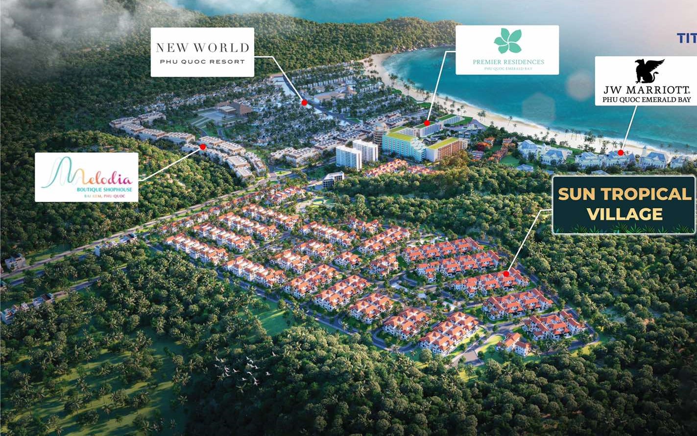 Nằm trong hệ sinh thái Sun Group tại Phú Quốc, biệt thự nghỉ dưỡng Sun Tropical Village là tổ hợp bất động sản nghỉ dưỡng Wellness Second Home đầu tiên tại Phú Quốc mang phong cách nhiệt đới với 3 tầng thiên nhiên: Vườn trong nhà – Nhà trong rừng – Rừng ven biển.