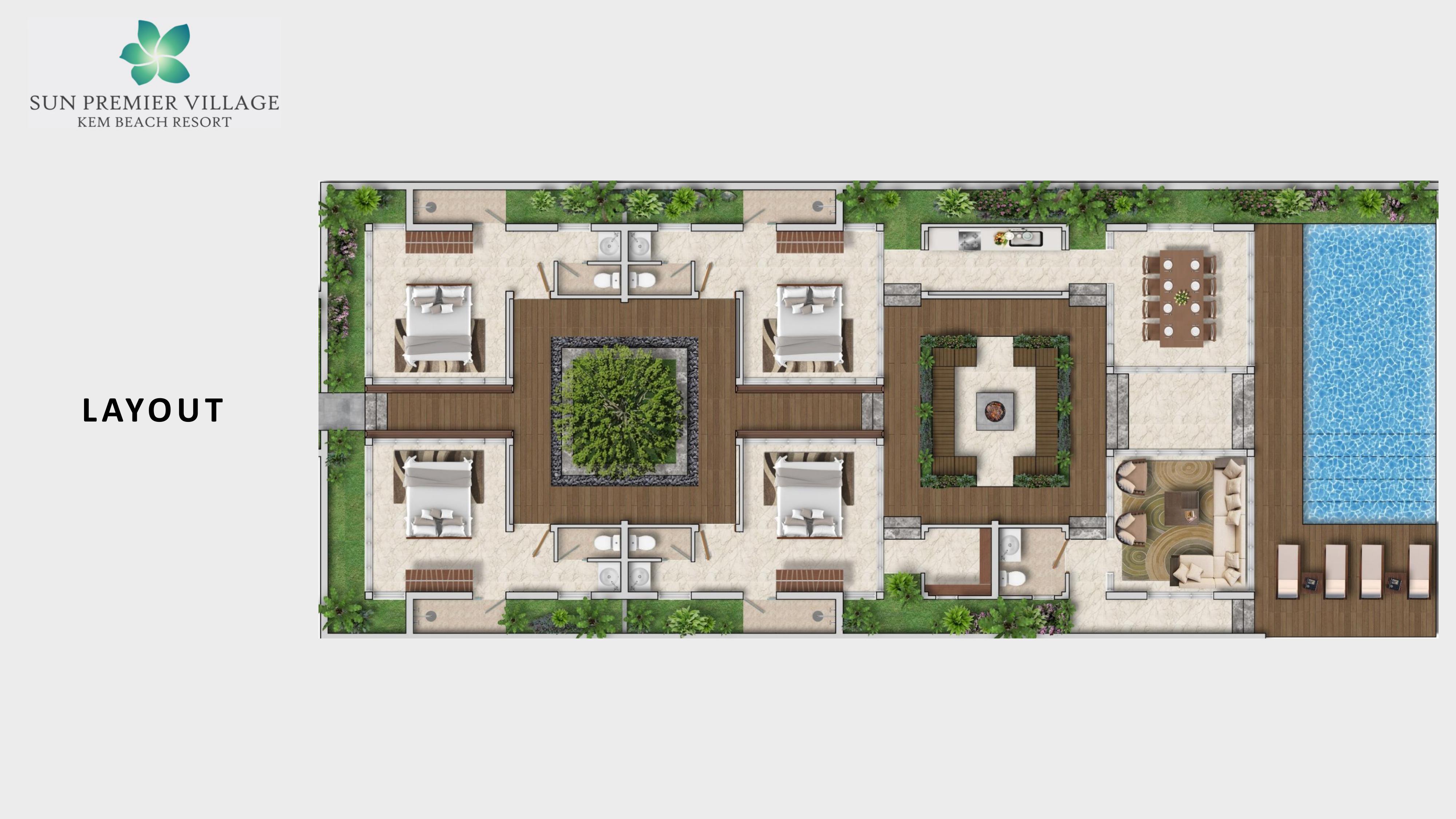 Mặt bằng dự án Sun Premier Village Kem Beach Resort. Với phong cách thiết kế nhẹ nhàng, tinh tế, khác biệt, hoà mình vào thiên nhiên đó là nét kiến trúc độc đáo chỉ có tại dự án Biệt thự Bãi Kem của Tập đoàn Sun Group.