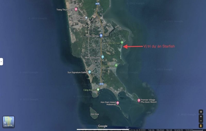 Theo tin tức ban đầu của Tập đoàn Sun Group, Vị trí dự án Starfish Phú Quốc có nằm tại tại Bãi Sao, Phường An Thới, thành phố Phú Quốc nằm ở phía Bắc đảo Phú Quốc. Sở hữu đường bờ biển dài rộng cùng cảnh quan thiên nhiên tuyệt đẹp. Đây sẽ là một quỹ đất kim cương có trong tương lai có thể rất cao trong việc khai thác và nâng cao ngành du lịch biển.