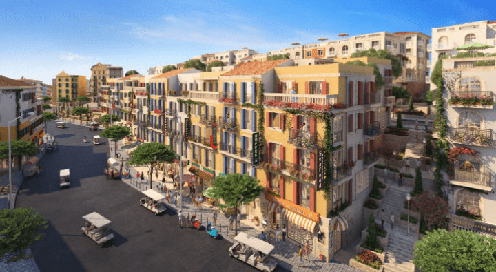 Với cảm hứng từ ngôi làng Taormina của miền Sicily nước Ý. Những cảnh quan và điểm nhấn của thị trấn như: đài phun nước, Spanish Step, cảnh quan nội khu, bút đá tháp, phố dạo bộ, vườn bậc thang… Đến với thị trấn Địa Trung Hải, bạn còn có thể trải nghiệm dịch vụ đẳng cấp của Teatro Club. Với những đêm nhạc tưng bừng hay những giây phút lãng mạn tuyệt vời nhất khi ngắm hoàng hôn cùng người mình yêu tại Cầu Hôn.