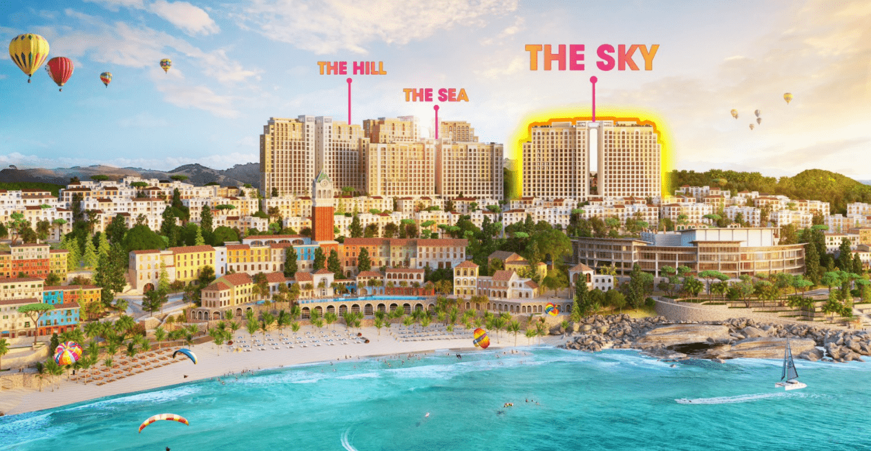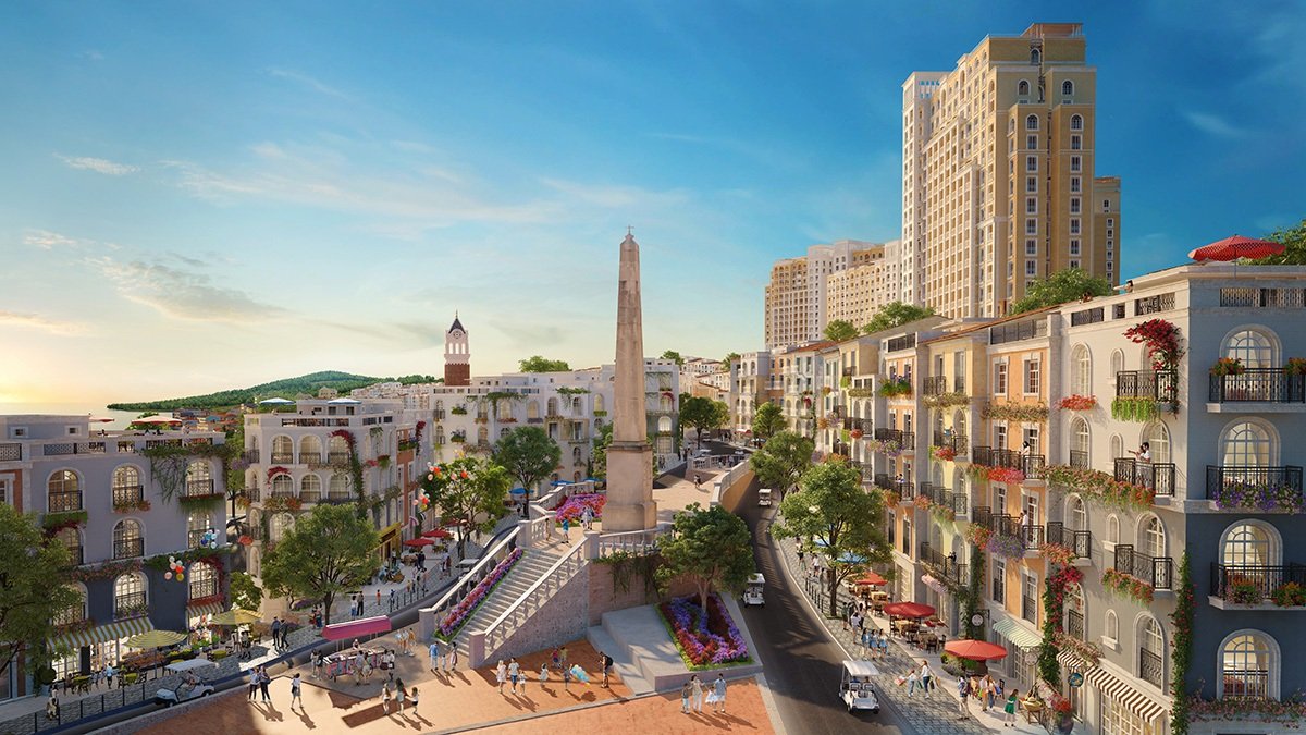 Ở bờ Tây Nam đảo, nơi có địa thế giật cấp theo sườn đồi cùng chiều cao 35m lý tưởng trên mực nước biển, một “thị trấn Địa Trung Hải” đẹp như mơ đã được Tập đoàn Sun Group kiến tạo, để du khách không ngừng trầm trồ.