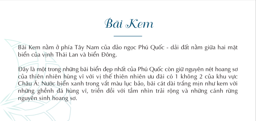 - Về vị trí: Tọa lạc tại Bãi Khem – một trong những bãi biển đẹp nhất tại Phú Quốc